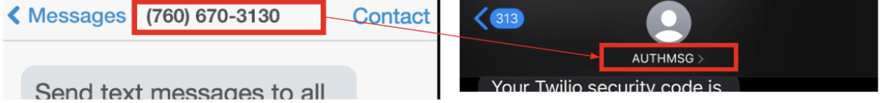 Example of how an Alphanumeric Sender ID (AUTHMSG) would look in place of the standard number
